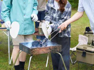 バーベキューに必要な機材やテントのレンタルが可能です。